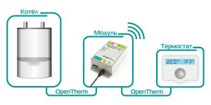 - Работа с внешним комнатным термостатом (к модулю подключается комнатный термостат OpenTherm).